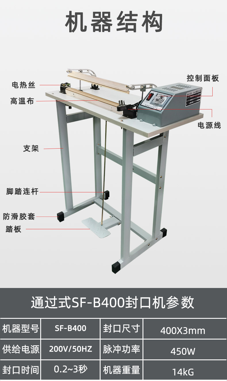 - 壓力不均勻:會導致封口處有的地方封得好,有的地方封不牢。比如封口機的加熱條變形、腳踏板的機械結構出現問題,都可能使封口時壓力分布不均。