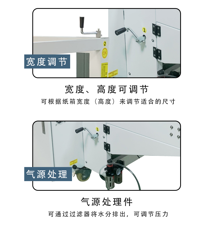 - 參數(shù)設(shè)置:根據(jù)待包裝紙箱的尺寸,在控制系統(tǒng)的觸摸屏或控制面板上設(shè)置相應(yīng)參數(shù),如紙箱的長度、寬度、高度等,以及膠帶長度、膠水涂布量、開箱和封底的速度等參數(shù)。有些設(shè)備還可能需要設(shè)置吸盤的吸力、折合板的動作時間等參數(shù)。這些設(shè)置通常較為直觀,按照設(shè)備的提示進(jìn)行操作即可。