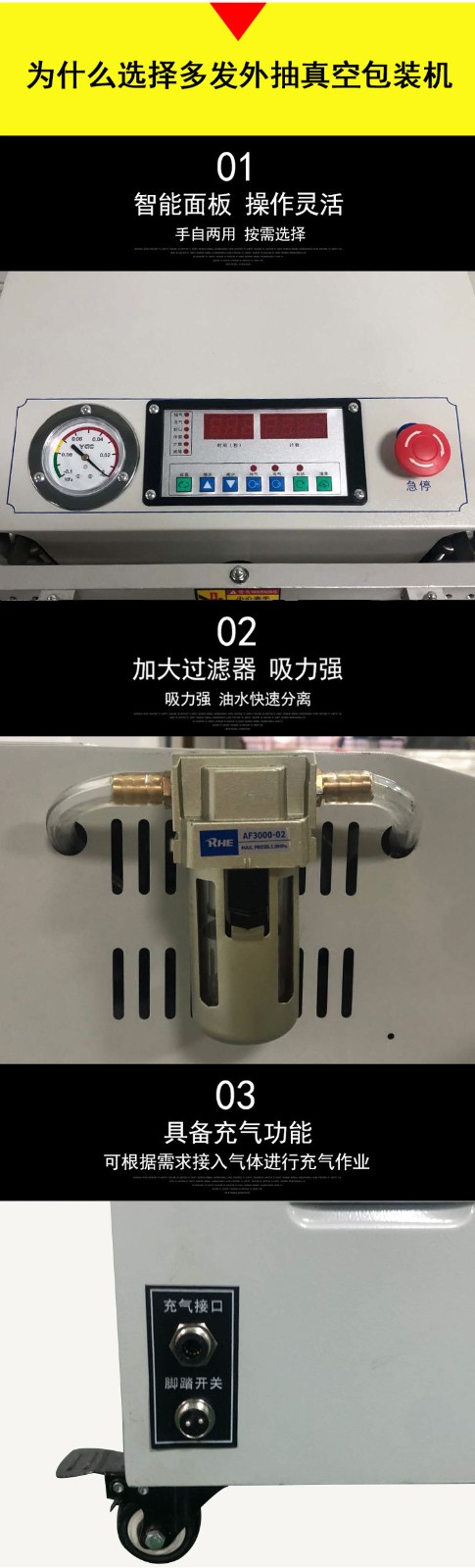 - 包裝尺寸:根據(jù)需要包裝的物品大小和包裝袋尺寸,選擇合適抽氣嘴規(guī)格和工作臺(tái)尺寸的外抽真空包裝機(jī),確保能夠順利進(jìn)行包裝操作。