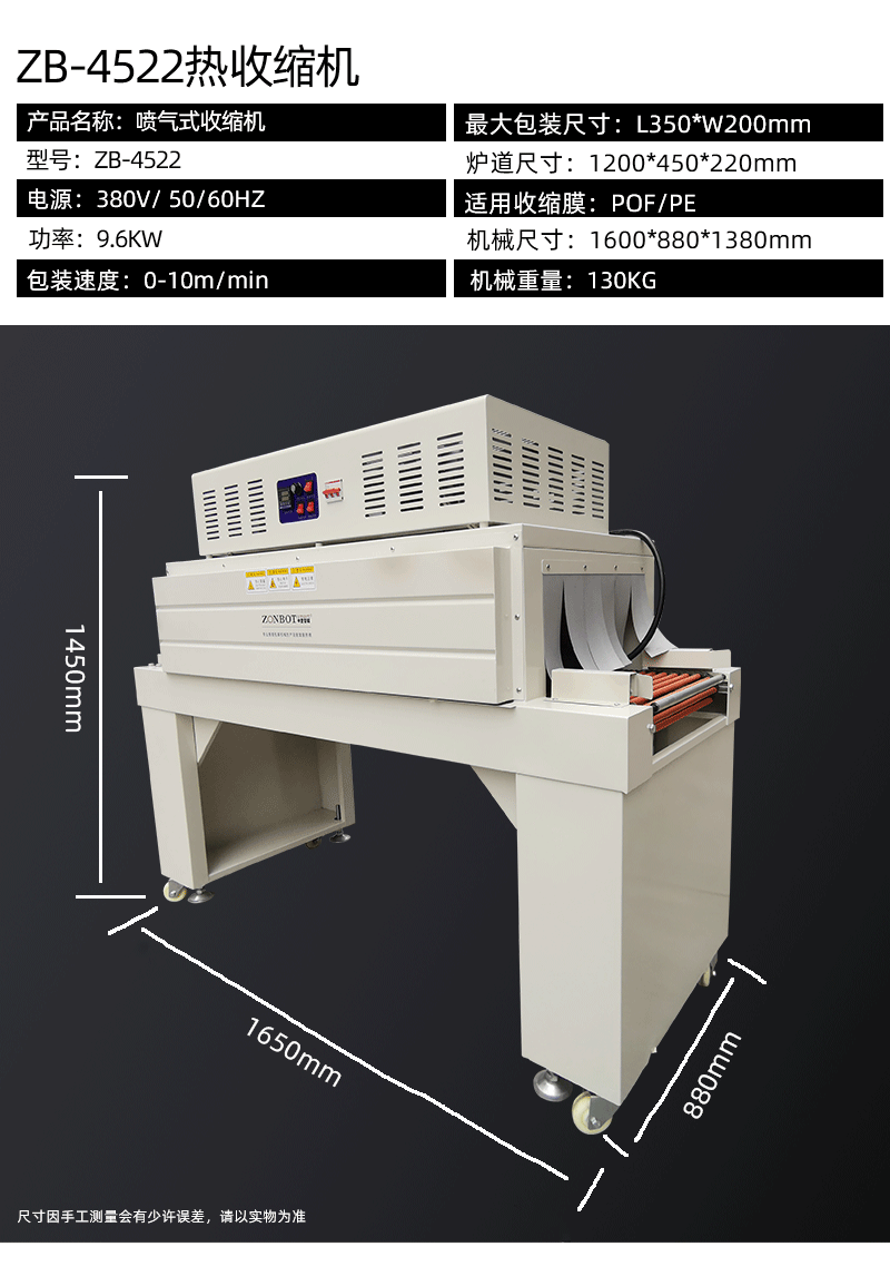 • 適用范圍廣:可適用于 POF、PVC、PE 等各種工業標準的收縮膜,廣泛應用于食品、化妝品、制藥、印刷、電子、五金、陶瓷、飲料等多個行業,適用于不同尺寸和形狀的產品包裝2
