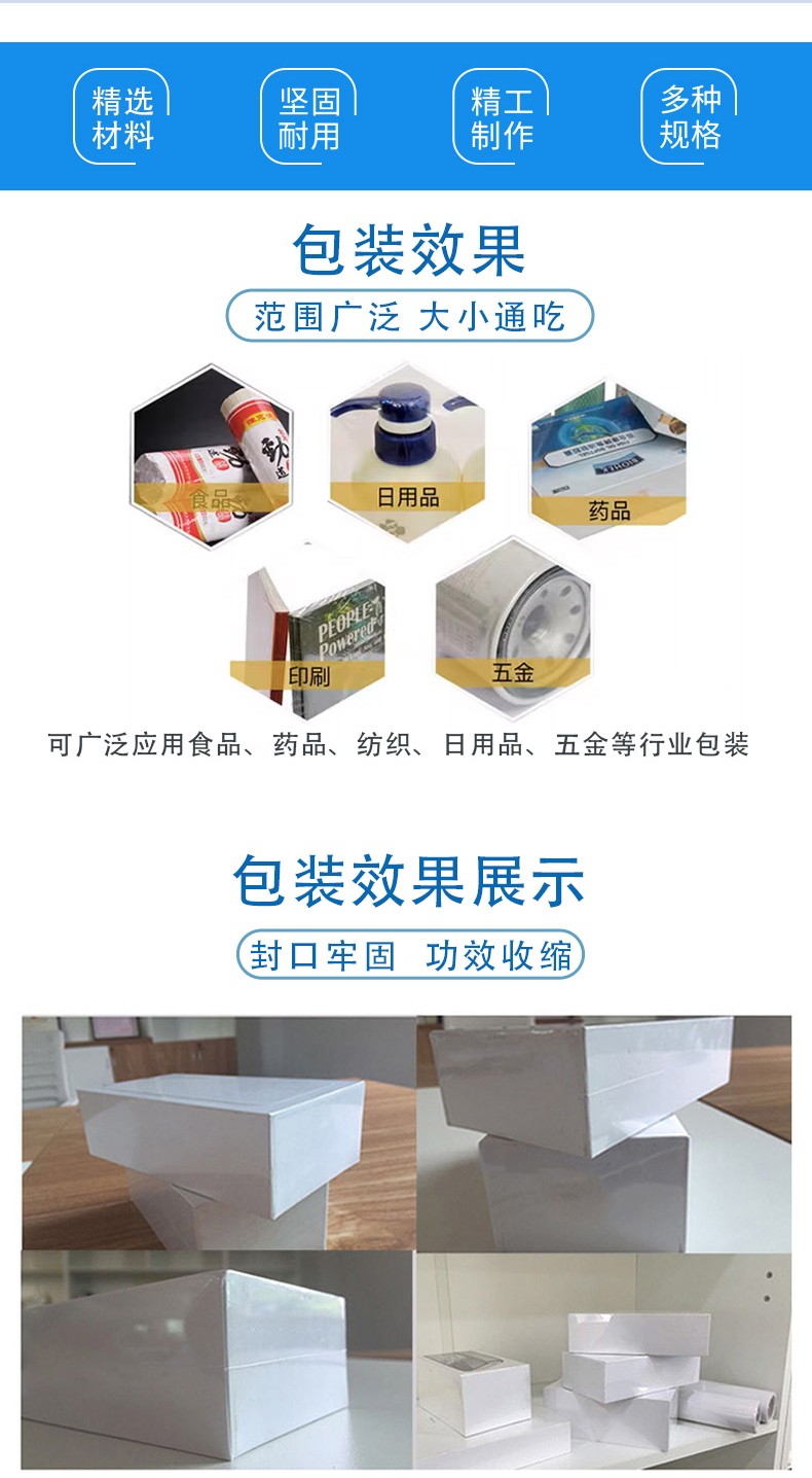 • 材質(zhì):不同材質(zhì)的薄膜(如 PVC、POF、PE 等)有不同的熱封和熱收縮特性。例如,POF 薄膜具有透明度高、韌性好、熱收縮率高等特點,在選擇設(shè)備時要確保邊封溫度和收縮溫度等參數(shù)能夠與之匹配。設(shè)備的封刀材質(zhì)和加熱方式可能也需要根據(jù)薄膜材質(zhì)進行調(diào)整,以達到最佳的封口和收縮效果。