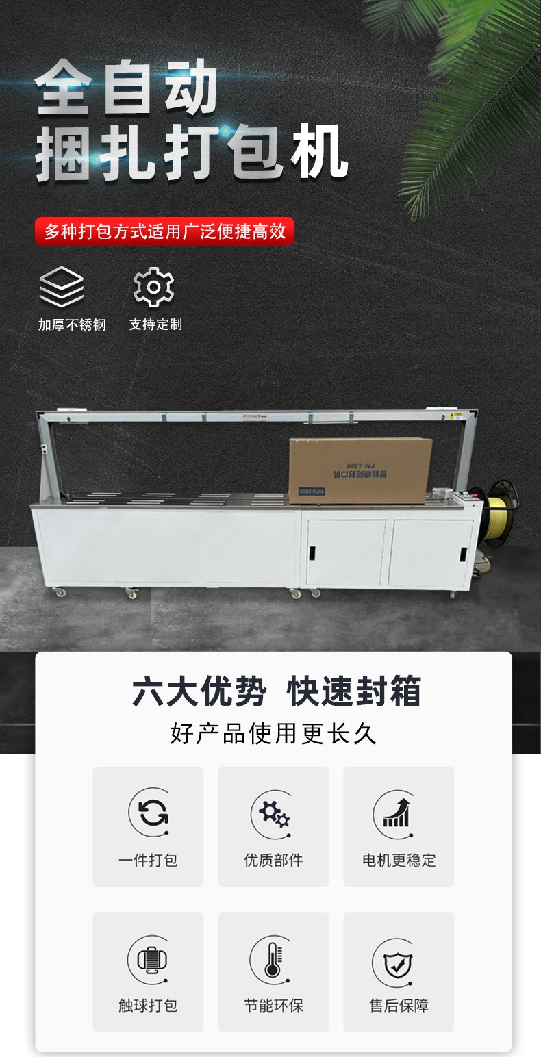全自動打包機是一種高效、便捷的包裝設備,廣泛應用于各個行業(yè)的產品包裝環(huán)節(jié),以下從工作原理、結構組成、性能特點、應用范圍等方面對其進行簡要概述: