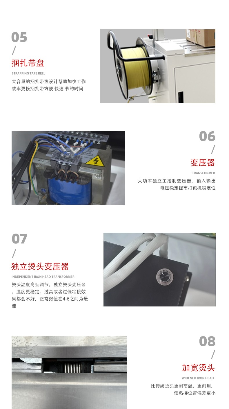 - 能夠精確控制打包帶的使用長度,避免了人工打包時可能出現的打包帶浪費現象,節(jié)約了包裝材料成本。