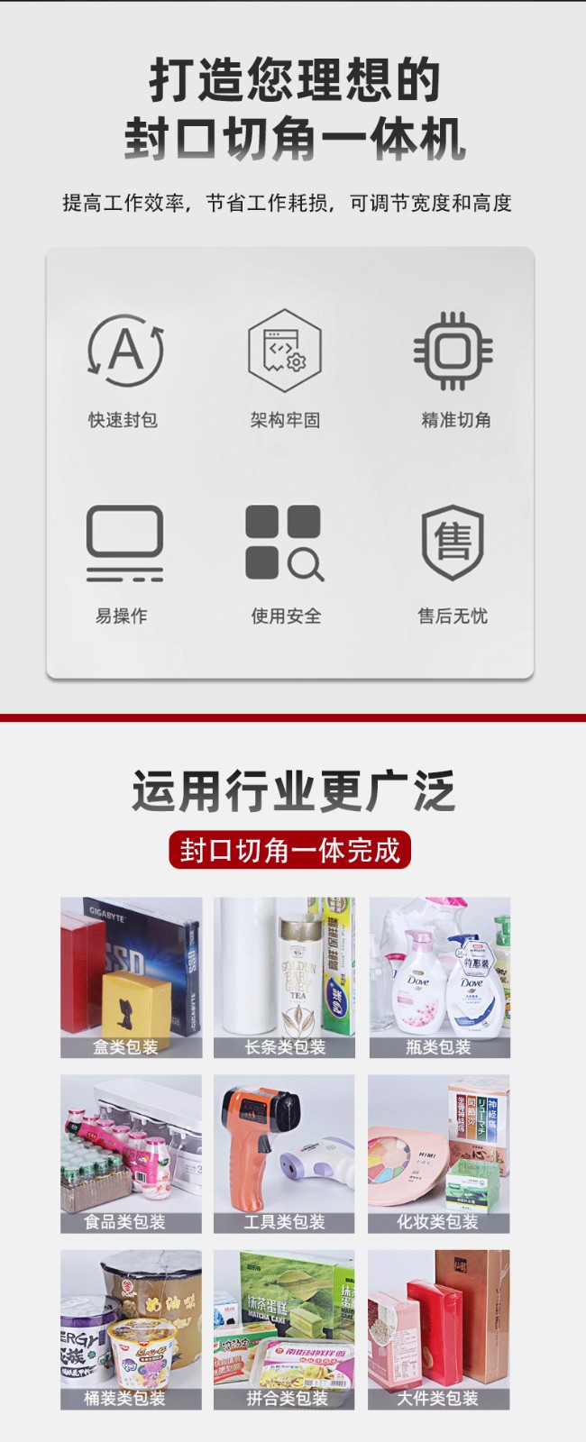 - 高效自動化:自動完成封口和切角工序,提升生產(chǎn)效率,降低人工成本,如在食品、日用品等大規(guī)模包裝生產(chǎn)中優(yōu)勢明顯。