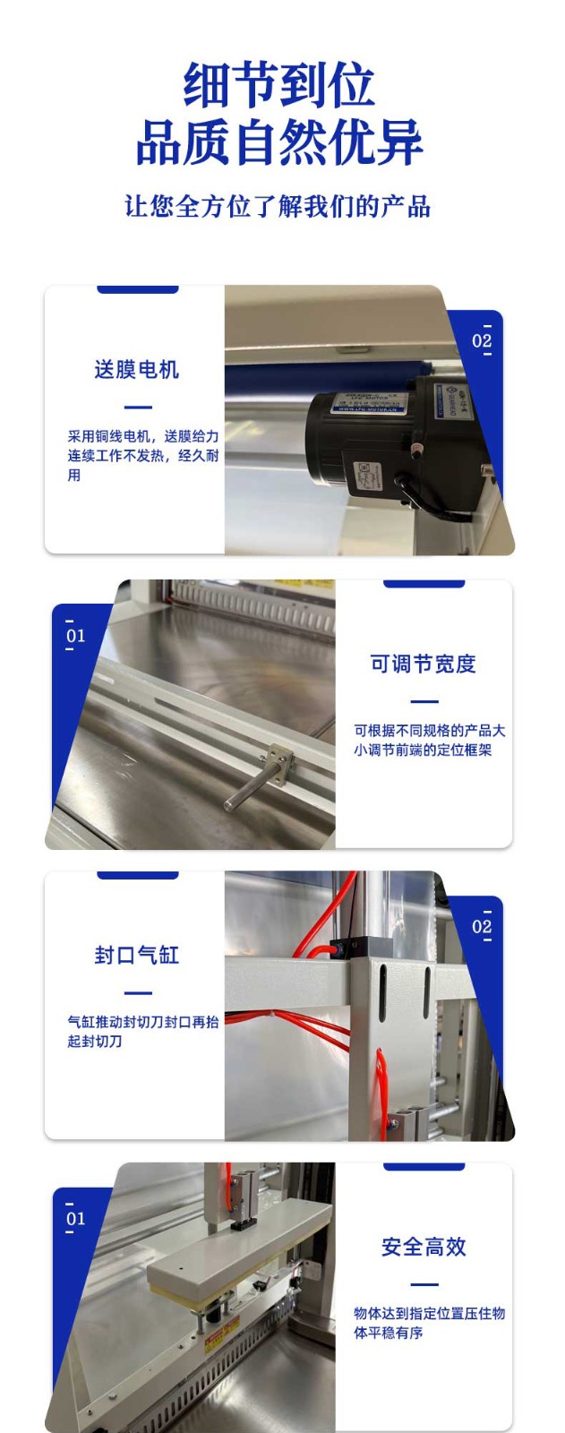 • 包裝效果好:通過精確的送膜和封切控制,以及均勻的熱收縮過程,包裝膜可以緊密貼合產(chǎn)品,形成美觀、牢固的袖口式包裝,提升產(chǎn)品的外觀品質(zhì)和市場競爭力6